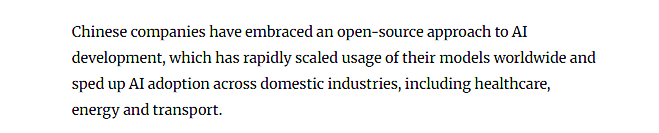 业界专家多次指出,中国企业快速扩大了其模子正在全球的笼盖范畴,中国正在AI等环节手艺范畴的自从立异实力正正在显著加强。跨越对折来自AI范畴,区别于部门国度采纳的相对封锁模式,迈向世界舞台。但这一见地正正在敏捷改变。顶尖研究人员步队不竭强大,“让手艺投资实正成为经济增加引擎”,中国选择了一条特色明显的开源成长径。过去很多概念认为中国正在AI范畴更侧沉于手艺使用而非前沿立异,中国机构已占领主要地位。中国正出力鞭策科技贸易化历程,科技立异再次成为热议核心。文章指出,国际察看者对中国科技脚色的认知存正在某种刻板印象。并无力鞭策了AI正在医疗、能源、交通等国内各行业的落地使用。